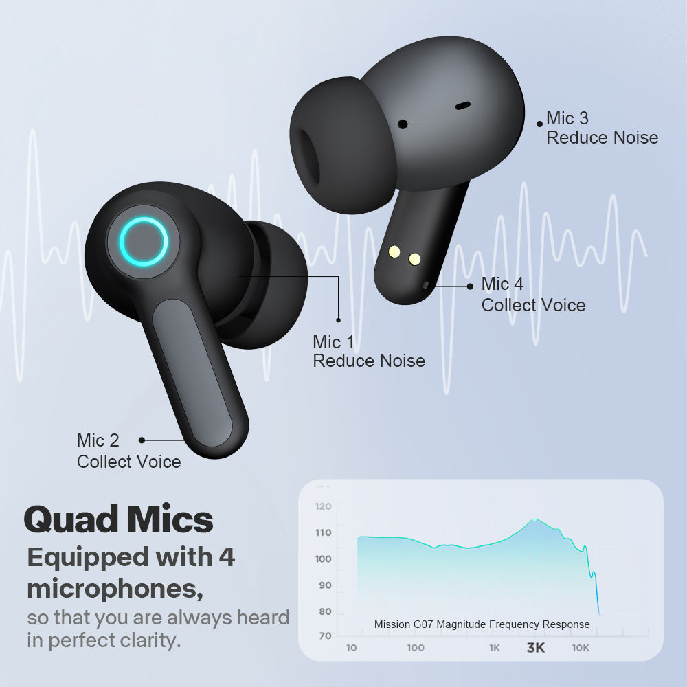 Developing wireless earbuds and seeking a manufacturing partner for samples & production. Requirements: ANC + ENC, 8 mics, Bluetooth 5.3, stemless design, 100h battery life, high-fidelity audio.