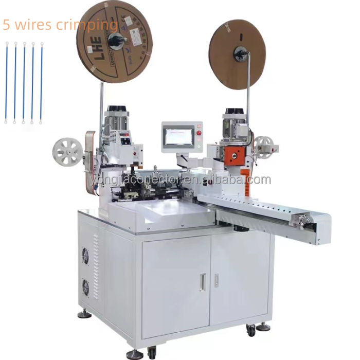 我打算购买一台伺服电机端子压接机,但在购买前需要更多详细信息。您能否说明一下哪些类型的压接器与各种端子类型兼容,例如交叉送料端子和旗形端子?另外,我还想了解该机器是否支持压接RJ连接器,以及需要哪些相应的模具。